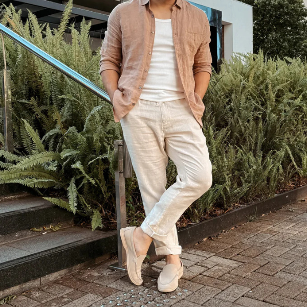 Calça Masculina Sartong Liverpool® — Casual Elegante com Estética de Linho Europeu