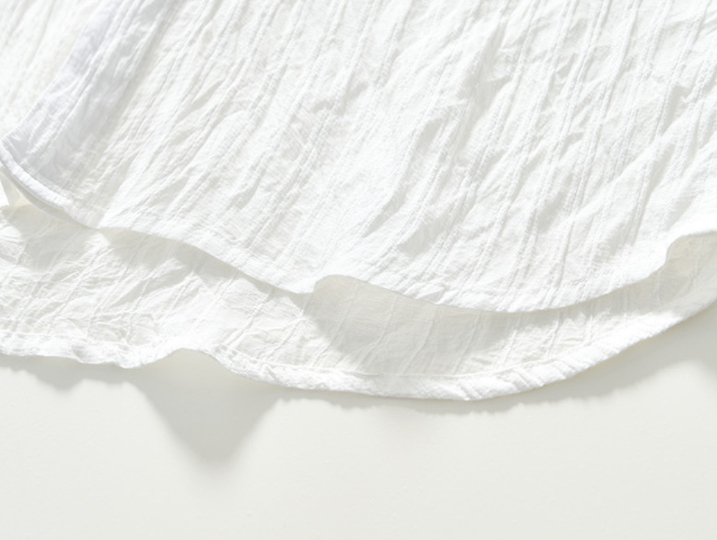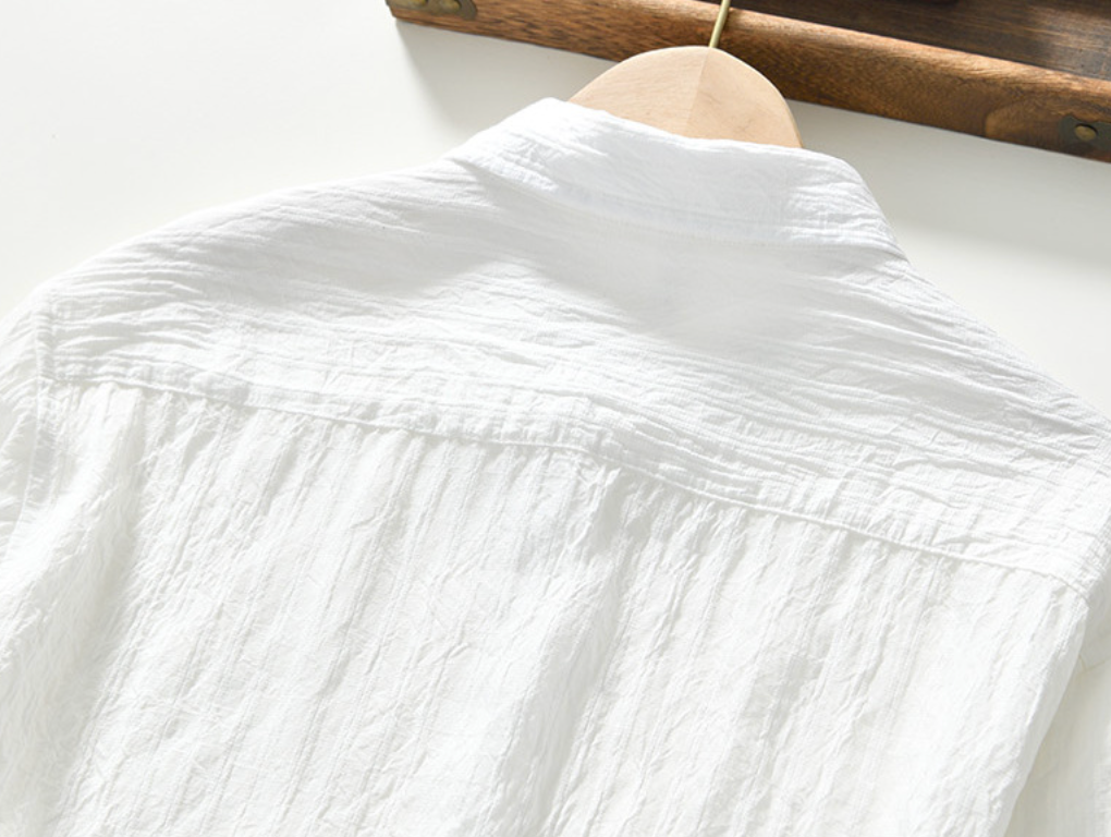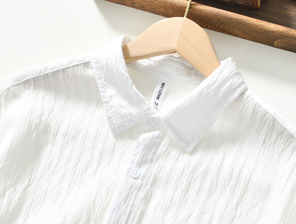 Confeccionada em linho com rayon, o tecido texturizado oferece respirabilidade e conforto durante todo o dia.
