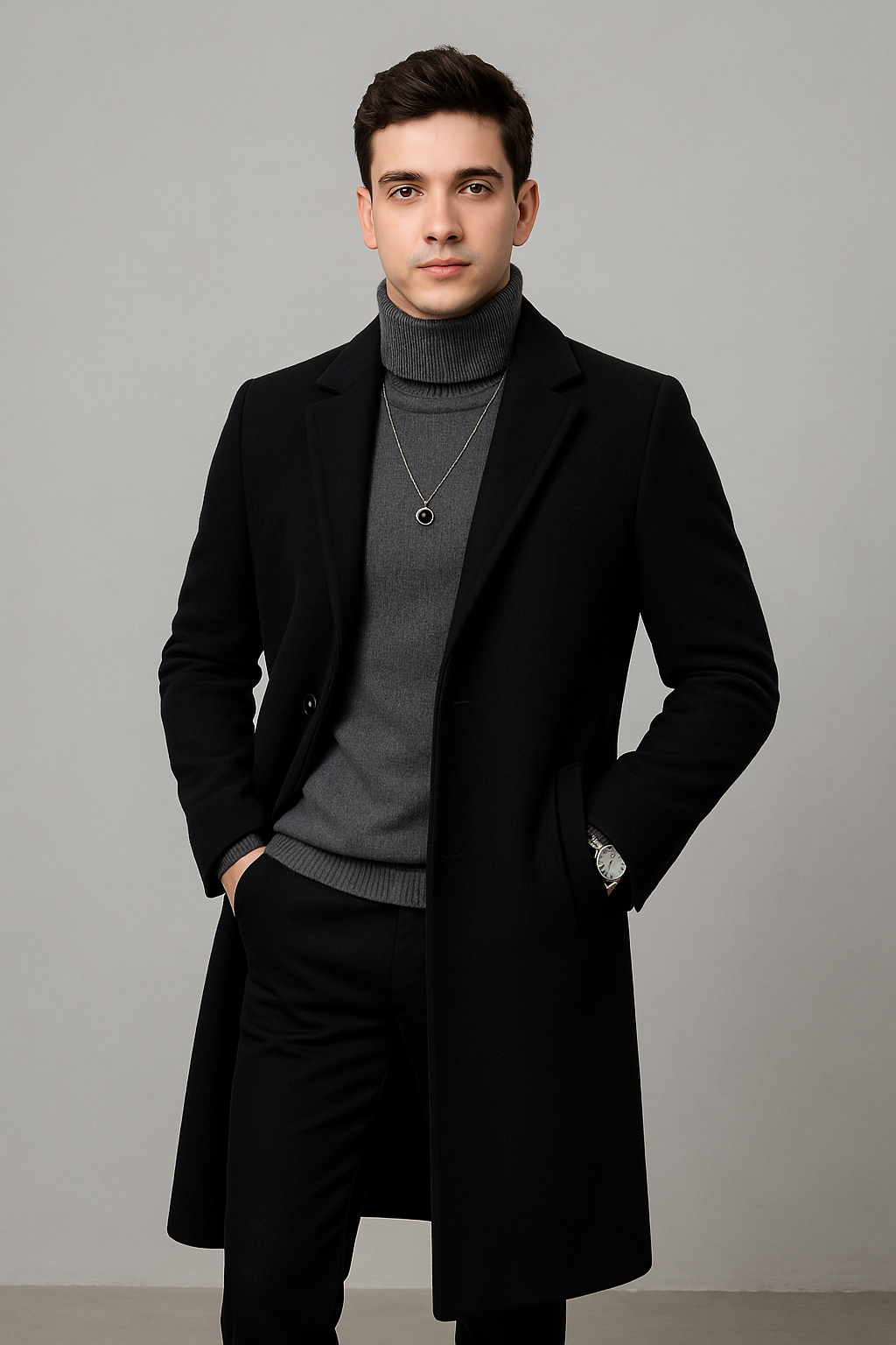 Sobretudo Masculino Clássico Sartong Novi Sadi® é um casaco exterior de inverno com estilo atemporal, ideal para homens que valorizam elegância e conforto no dia a dia e em ocasiões especiais.