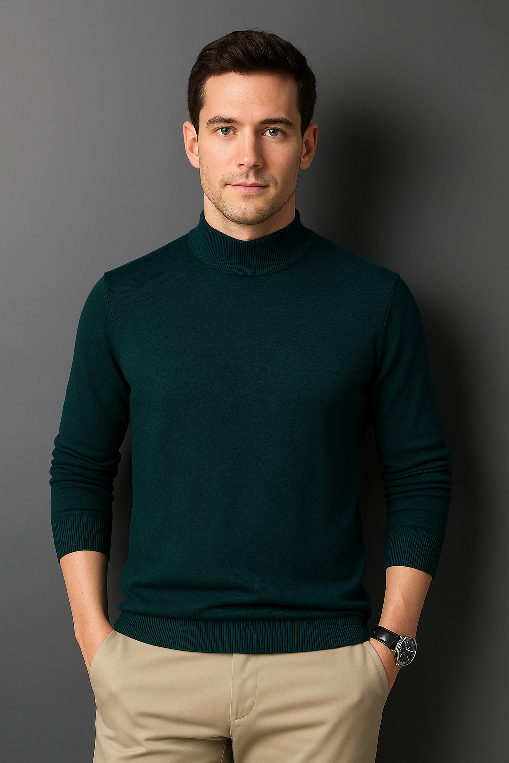 Conforto diário e estilo discreto definem este suéter masculino. Confeccionado com uma mistura de algodão com poliéster e elastano, oferece toque macio, elasticidade suave e um caimento justo que valoriza a silhueta sem comprometer a mobilidade.